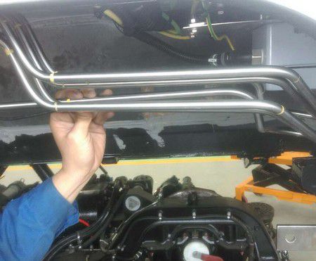 鋼管總成,彎管的管身上設置有若干個包管夾組件;包管夾組件由兩個U型包管夾組成;兩個U型包管夾之間通過螺栓和螺母夾持固定在彎管的管身上;相鄰兩個包管夾組件之間通過連桿連接固定。彎管的管身在受到外部擠壓時,連桿為彎管起支撐的作用;彎管在受拉的情況下,由于連桿的定位作用,增加彎管的抗拉性能;使用本結構后彎管的抗拉抗壓強度得到提高,保障了液壓鋼管總連接的準確連接.