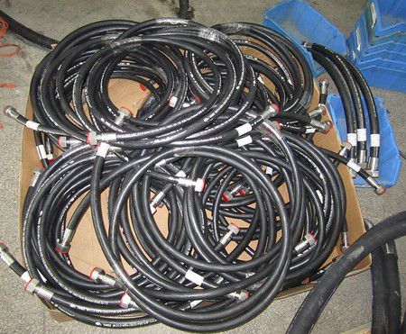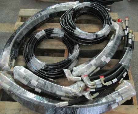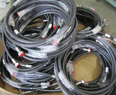 液壓軟管主要由耐液體的內膠層、中膠層、2或4或6層鋼絲纏繞增強層、外膠層組成,內膠層具有使輸送介質承受壓力,保護鋼絲不受侵蝕的作用,外膠層保護鋼絲不受損傷,鋼絲層是骨架材料起增強作用。